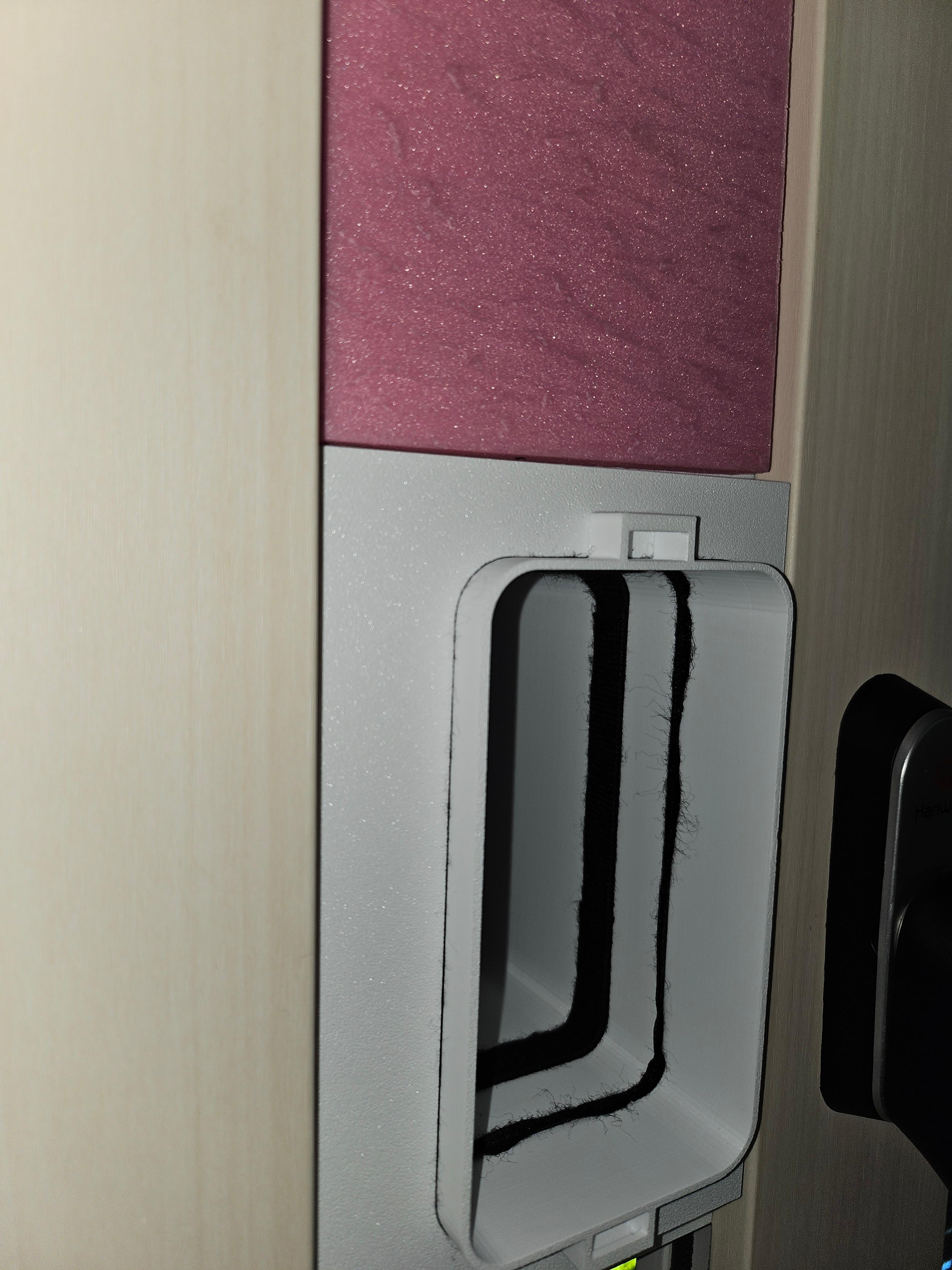 이어서 안쪽 창문 어댑터의 위아래 빈 공간에도 재단된 아이소핑크를 맞춰 넣었습니다. 역시나 정확하게 홈에 밀착되어 깔끔하게 마무리되었습니다.